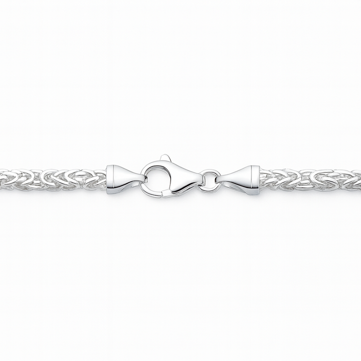Massive Königskette (vierkant) mit 3mm Kantenbreite. Die Königskette besteht aus massivem 925er Silber und ist entsprechend gestempelt. Ein passender Karabinerverschluss und dezente Endkappen ergänzen die hochwertigen Kettenglieder und lassen keinen Zweifel an der Langlebigkeit der Königskette.